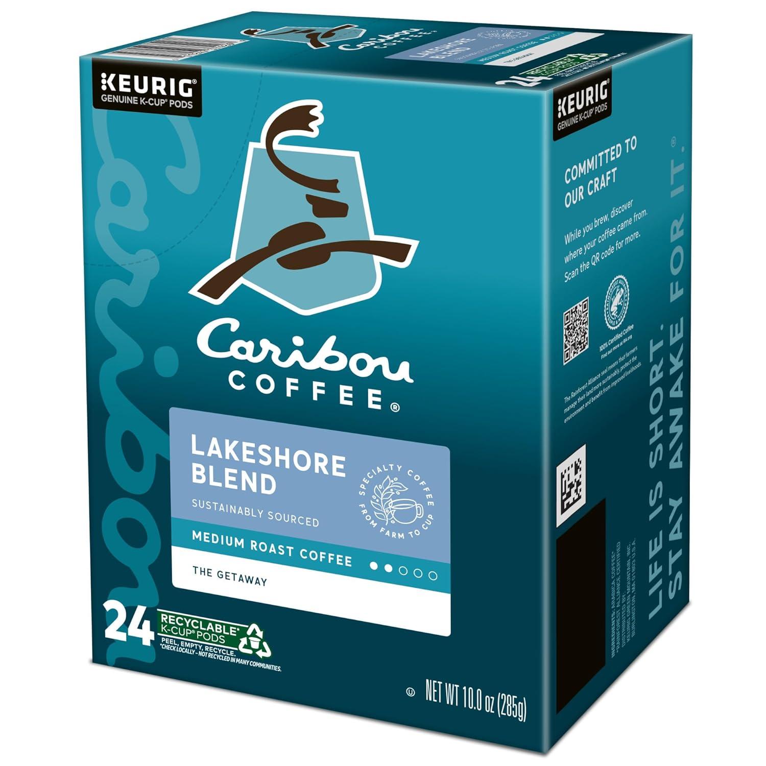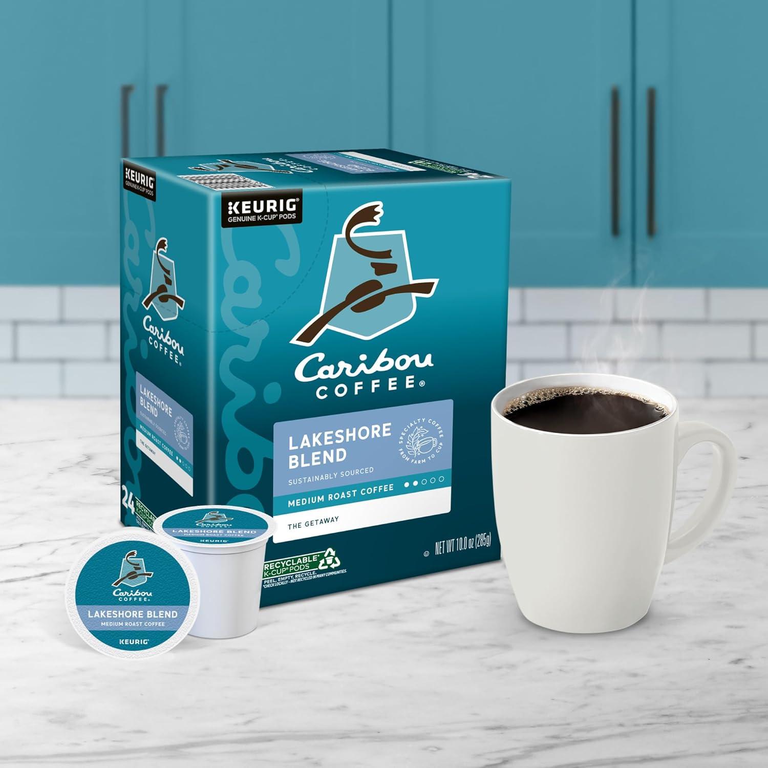 Caribou Coffee Reindeer Blend, Single-Serve Keurig K-Cup Pods, Dark Roast Coffee Pods, 88 Count(Lakeshore Blend)