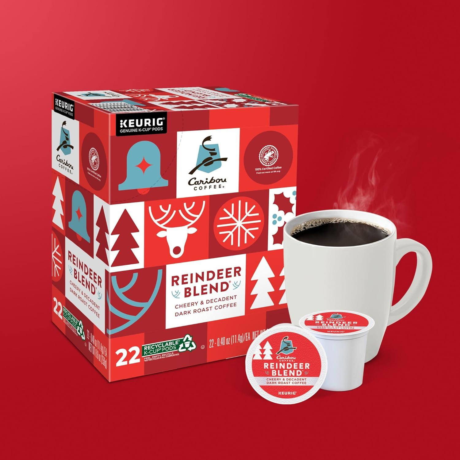 Caribou Coffee Reindeer Blend, Single-Serve Keurig K-Cup Pods, Dark Roast Coffee Pods, 88 Count(Reindeer Blend)