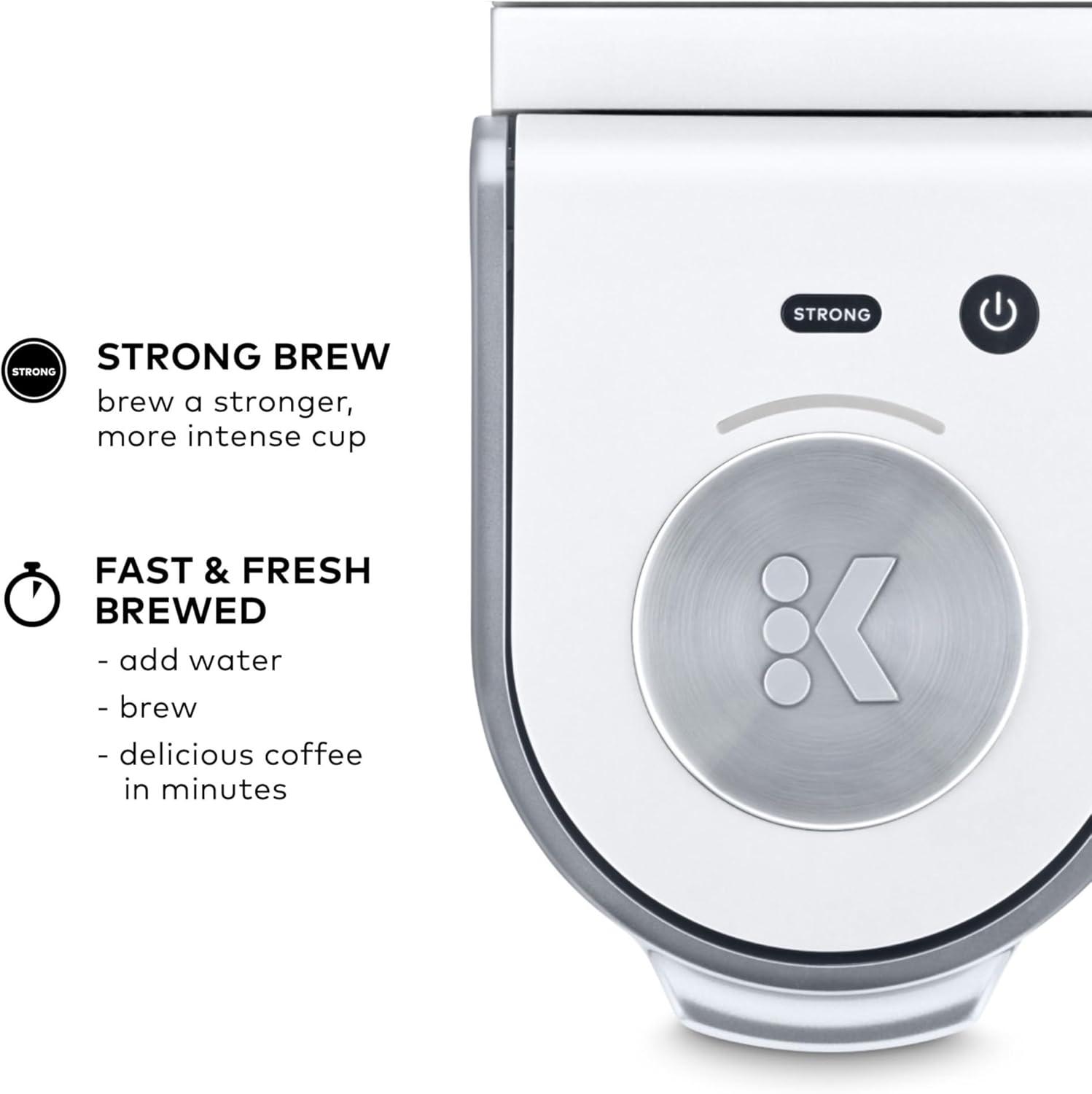 The Keurig K-Mini Plus single serve coffee maker in Evening Teal features a new sleek design, and at less than 5 inches wide is the perfect size for any space or occasion. The K-Mini Plus brewer is effortlessly simple to use – just add fresh water to the removable reservoir, pop in your favorite K-Cup pod, press the brew button and enjoy fresh brewed, delicious coffee in minutes. Choose from hundreds of delicious K-Cup pod varieties to enjoy 6-12oz of your favorite coffee, tea, cocoa, and iced beverages. And for those who like a bolder brew, select the Strong button to increase the strength and bold taste of your coffee. With a single cup removable reservoir, a pod storage unit to store 9 of your favorite K-Cup pods, and cord storage, the K-Mini Plus coffee maker is the portable brewer that makes anywhere perfect for great coffee. The K-Mini Plus coffee maker is available in a variety of matte-finish colors with silver detailing on the handle and drip tray. Based on consumer feedback, we have updated the K-Mini Plus Brewer. Customer reviews have been removed that relate to the previous version of the brewer.