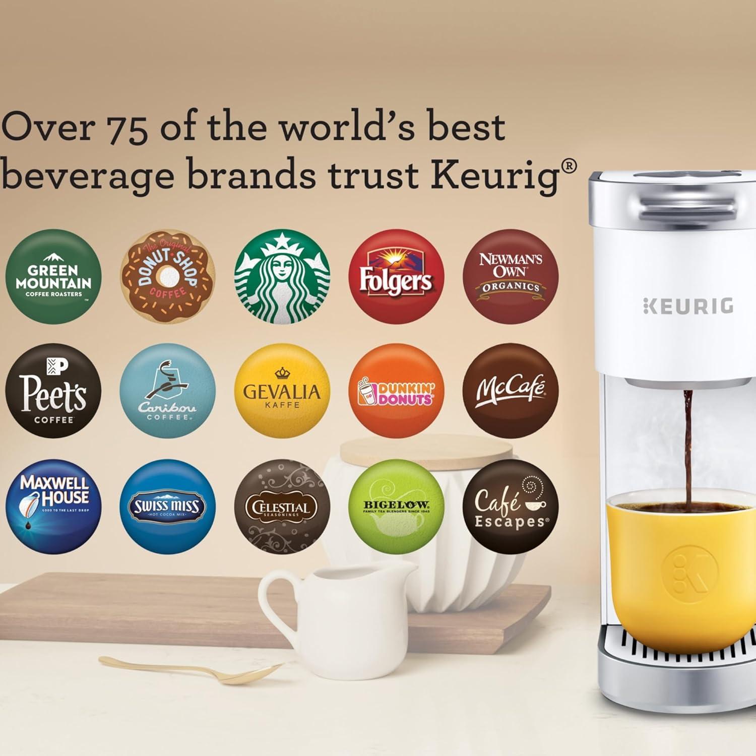 Keurig K-Mini Plus Single Serve K-Cup Pod Coffee Maker, with 6 to 12oz Brew Size, Stores up to 9 K-Cup Pods, Travel Mug Friendly, Evening Teal(White)