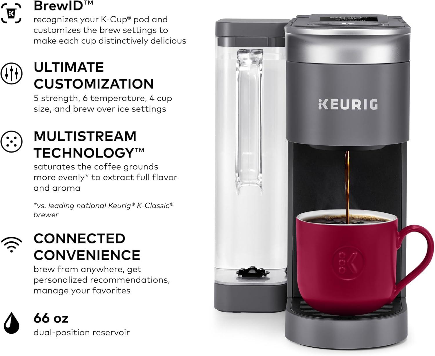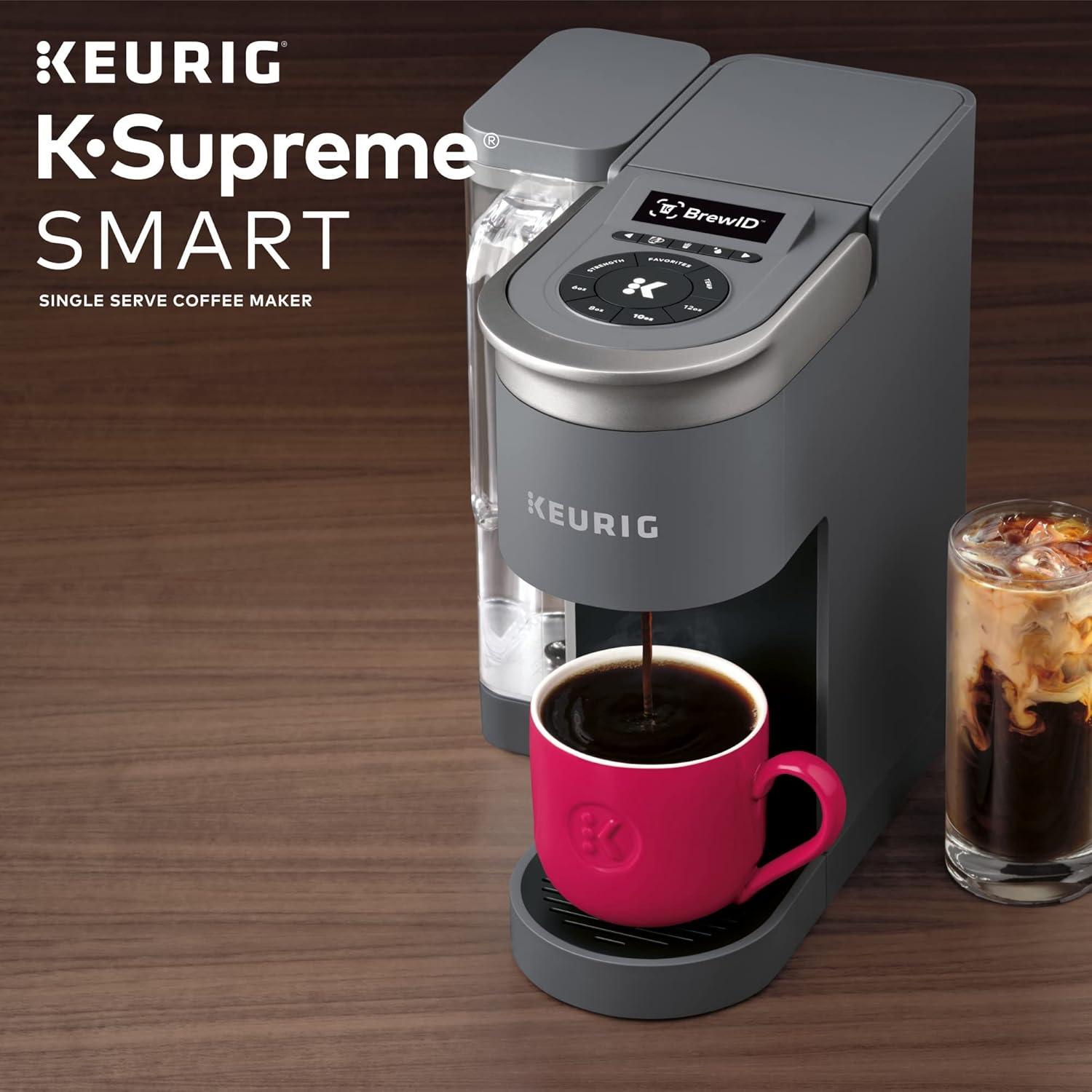 Keurig K-Supreme SMART Single Serve Coffee Maker With Wifi Compatibility, 4 Brew Sizes, And 66oz Removable Reservoir, Compatible with Alexa, Gray(Gray)