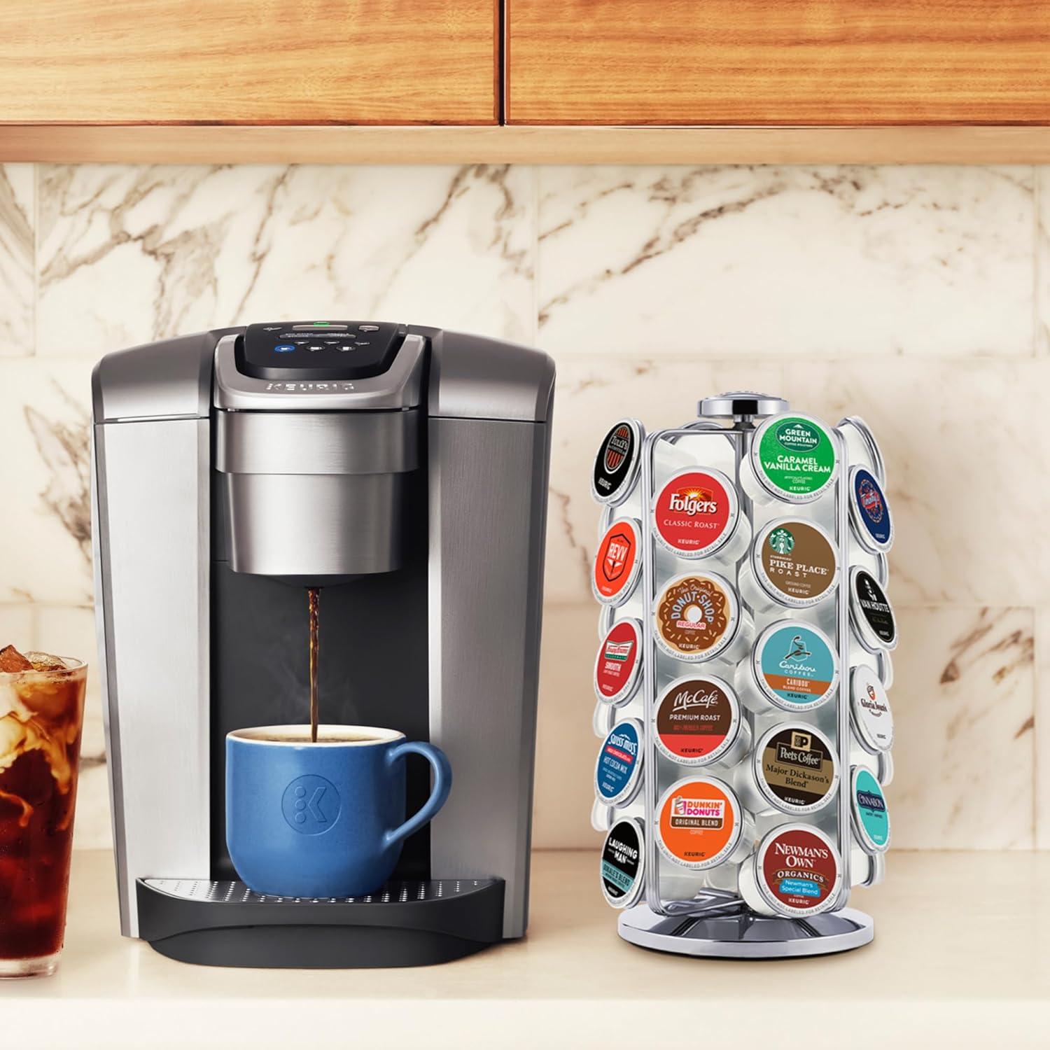Display more of your favorite beverages than ever before with the Keurig K-Cup Pod carousel. The added capacity lets you store up to 36 K-Cup pods in one convenient display, so your favorite beverages are always at hand. Whether you’re entertaining guests by offering a variety of beverages, or just trying to keep your kitchen clean, It’s the perfect storage accessory. The sleek, Chrome finish makes the Keurig K-Cup Pod carousel the perfect countertop complement to any Keurig Coffee maker, and the space saving design means it won’t take up too much room, either. The 360 Degree rotation ensures three dozen of your favorite K-Cup pods – Whether you enjoy Coffee, tea, hot cocoa, or more – are always ready to be brewed. Made from high-quality metal, it meets the highest standards for product quality and safety.