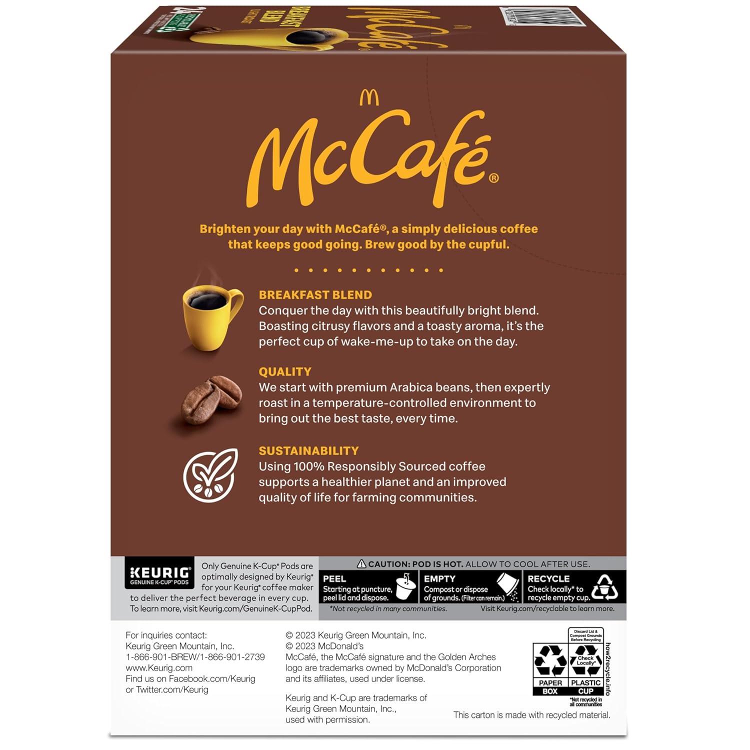 McCafe Breakfast Blend, Single Serve Coffee Keurig K-Cup Pods, Light Roast, 60 Count (6 Packs of 10)(Breakfast Blend)